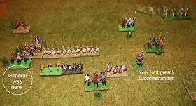 This is the last of the hoplite-type battles, the next is the first battle of the Latin War. Then there is a whole bunch of pikes (Alexander and Successors) and early Roman battles coming. But...to speed up playtesting, I have ordered a used copy of Imperator, a light campaign system by the same author (Bill Banks) as Ancients. As Ancient Battlelines clash owes some of its lineage to Ancients, I think I can use Imperator to generate a a bunch of battles around a particular epoch. I may be wrong though - will find out when it arrives.