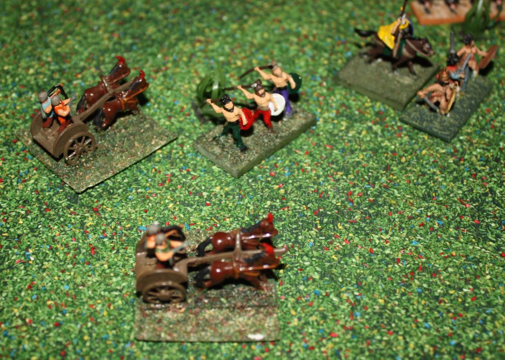 | The Roman Cavalry in melee with the Gallic chariots, just before the cavalry routs. |